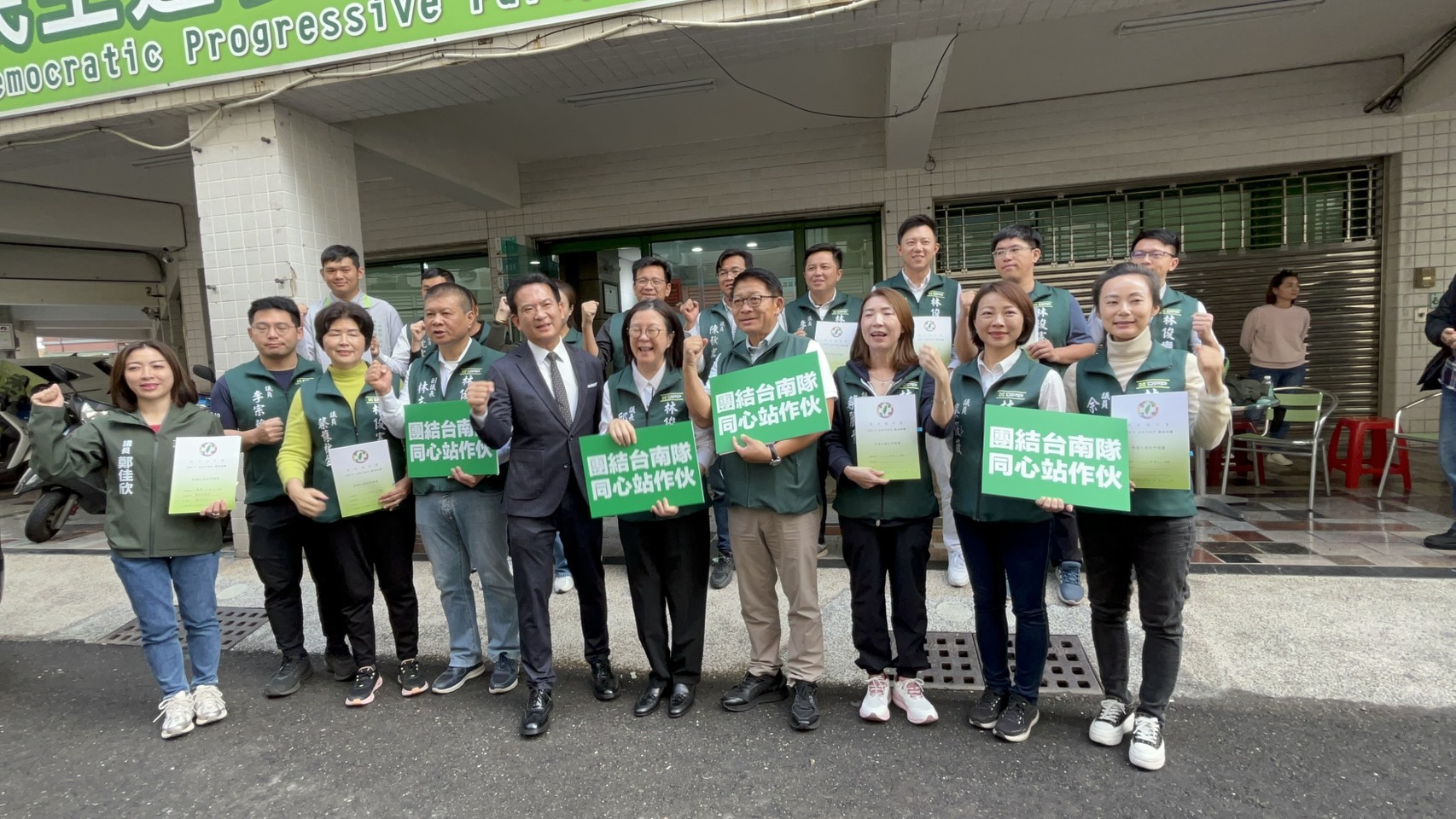 今(6)日共有二十二位現任及擬參選的民進黨市議員,議長邱莉莉、副議長林志展、總召李宗翰、副總召沈家鳳、發言人鄭佳欣、余柷青、王宣貿,蔡蘇秋金、謝舒凡、陳秋宏、蔡麗青、朱正軒、黄肇輝、沈震東的弟弟沈震南、周嘉韋、林依婷、李啟維、蔡筱薇、郭鴻儀等各區議員,一同完成黨內參選登記程序。大家齊聚台南,彼此造勢就不用讓不同選區的支持者千里迢迢奔赴黨部,讓這個流程順利完成。