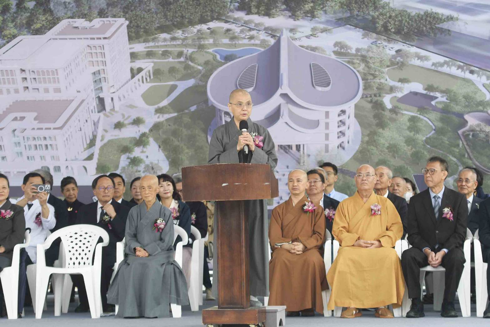 靜思精舍德愉、德寋二位法師也出席該儀式,德寋法師致詞指出,懷著無比感恩與感動的心,齊聚在高雄岡山這片充滿希望的土地,共同見證慈濟岡山園區的重要時刻,僅代表上人及精舍常住師父,向所有成就這份善因緣的社會大眾,致上最誠摯的感恩。
