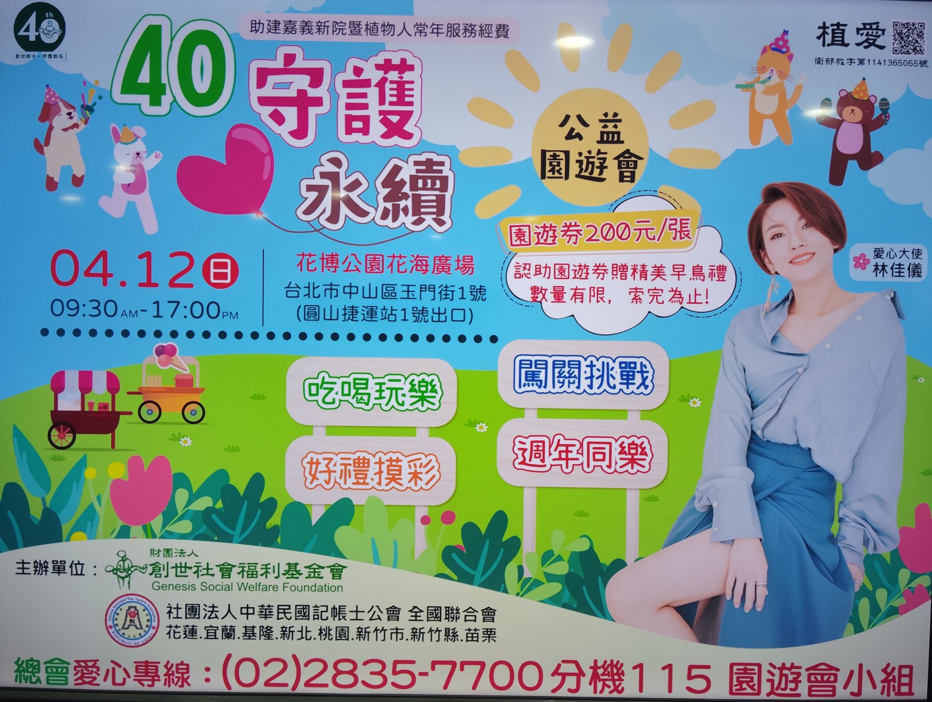 中華民國記帳士公會全國聯合會及各地方記帳士公會、南僑集團及林佳儀邀您4月12日參與公益園遊會。圖/何明弘拍攝