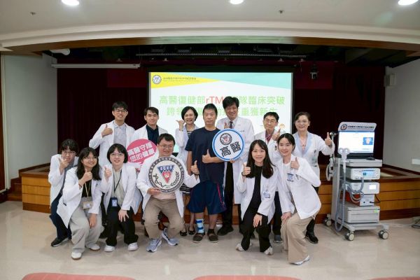 【視傳媒記者吉雄世高雄報導】重複經顱磁刺激(repetitive transcranial magnetic stimulation, rTMS)是一種非侵入性腦刺激技術。近年來,已被廣泛應用於中風後肢體偏癱、語言障礙、吞嚥困難以及部分精神疾病(如憂鬱症)的治療。高雄醫學大學附設中和紀念醫院(以下簡稱高醫)復健部利用rTMS整合跨領域復健,讓因急性缺血性腦中風的謝先生出院後,已能獨立完成大部分日常活動;另一位有中風症狀的孫女士,在出院後接受rTMS以及密集復健治療後,嘴角流口水和歪斜的現象完全好了,組織思考與表達能力也變得清晰,可以很清楚地表達想說的話。